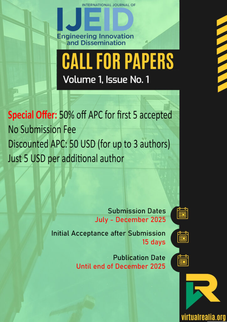The International Journal of Engineering Innovation and Dissemination (IJEID), published by VirtualRealia.Org, serves as a dynamic platform for the dissemination of cutting-edge research, fostering collaboration, and promoting innovation within the global engineering community. We welcome submissions that address real-world challenges, present novel approaches, and demonstrate practical applications in core engineering disciplines, emerging fields, and interdisciplinary research. read more